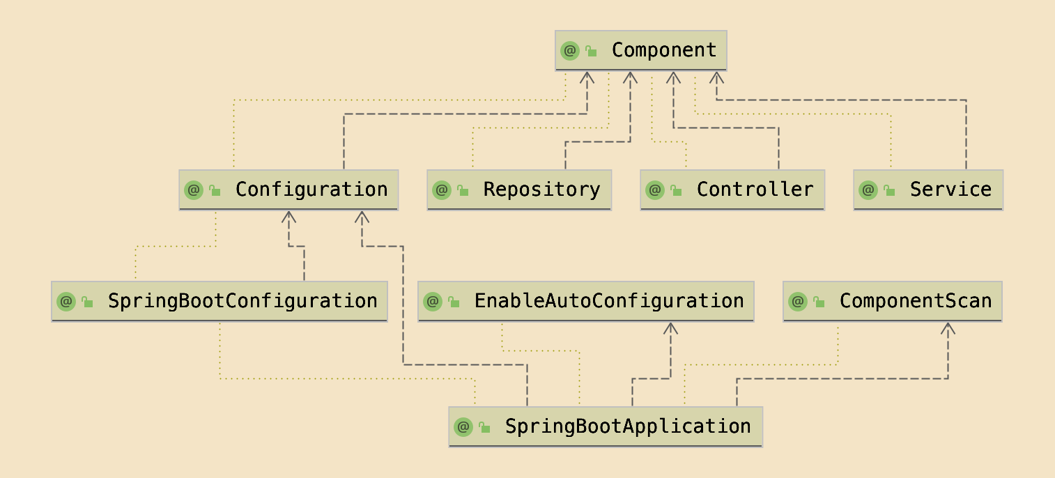 is annotated (dotted line) with @Repository and also